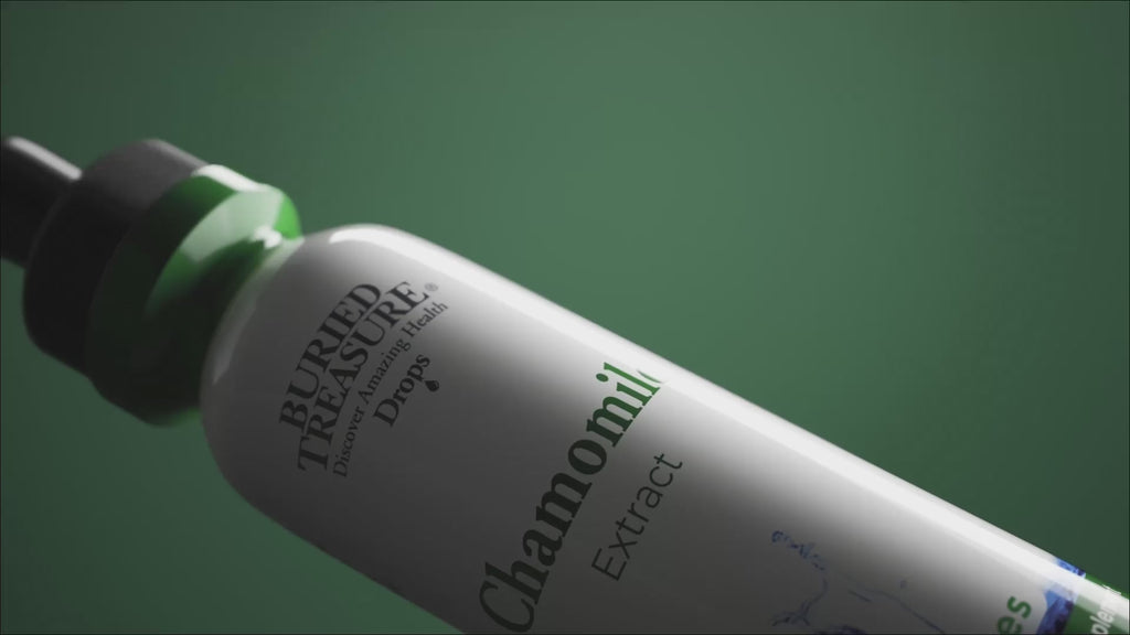 Explore the soothing essence of chamomile with Buried Treasure's Chamomile Extract Drops. Crafted from Matricaria chamomile flowers, this supplement captures the natural compounds known for their calming properties, including apigenin and bisabolol. The extraction process to preserve the active ingredients providing you with a, alcohol-free formula that integrates seamlessly into your daily routine.